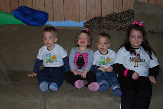 For Thanksgiving we went to Jonesboro to have lunch with Randall's family. We were missing a few people including our neice that is stationed in Baghdad. Racheal got to talk to her on the computer & was so excited. D-dad gave all the kids rides on the tractor. Then daddy got the small tractor out & hooked up the wagon to it & pulled the kids around. They loved it! After lunch the kids & I headed to Crockett. Randall had to leave the next day for Pampa so he could work on Saturday. It was a long trip by myself with the kids, but we made it! We had Thanksgiving again for supper. The next day we had Christmas. The kids got a lot of stuff & were so excited to open presents!! On Saturday we went to Palestine & saw Santa. The kids did so much better than I thought they would. The didn't sit in his lap, but they did talk to him. I had to sit on the step in front of him & hold the kids to get a pictures. Then we headed to ride Polar Express. It was a lot of fun! We sang, had hot chocolate, the kids got to dance & when we got to the north pole. Santa got on board & gave all the kids bells!